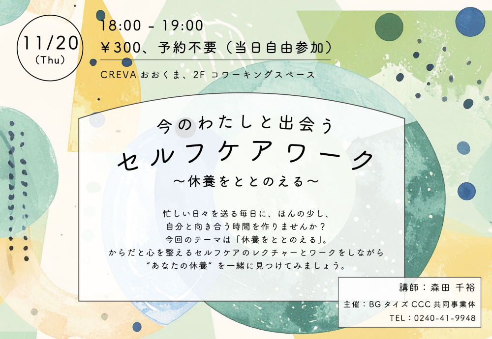 今のわたしと出会う セルフケアワーク ~休養をととのえる~